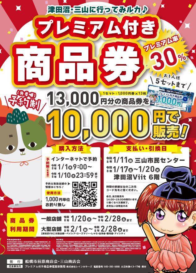 <津田沼・三山に行ってみルカ♪プレミアム付き商品券>